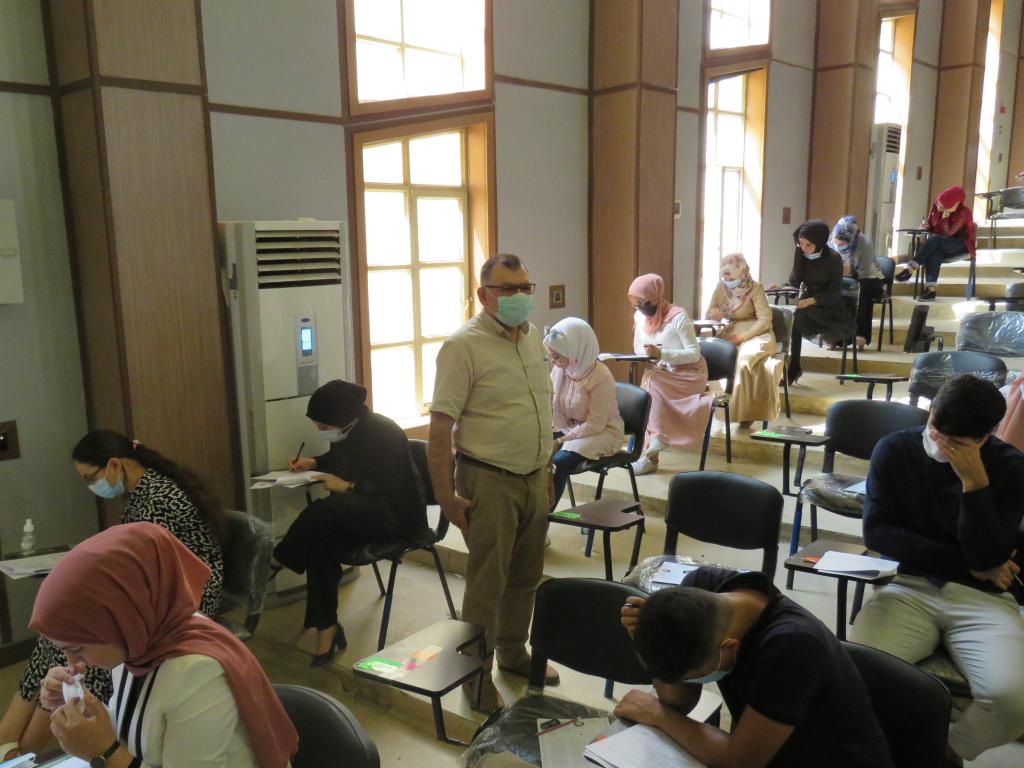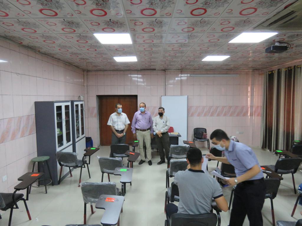 The final in attendance and electronic exams of the College of Medicine are ongoing for the academic year 2020-2021.On Monday, 2nd August 2021witnessed the examination of computer science for the first grade (electronically), and the Obstetrics and Gynaecology subject for the fifth grade (in attendance) where the Scientific Vice-Dean, Assistant Prof Dr Humam Gh. Ibrahim inspected the exam’s halls. The date mentioned is the eighth exam day, and thus the exams as a whole have reached their midpoint. Examinations are conducted electronically and in attendance in a calm and smooth manner with a high coordination between the deanship on the one hand, and the Examination Committee, all scientific department and the Administration Division on the other. Wish our dear students success.