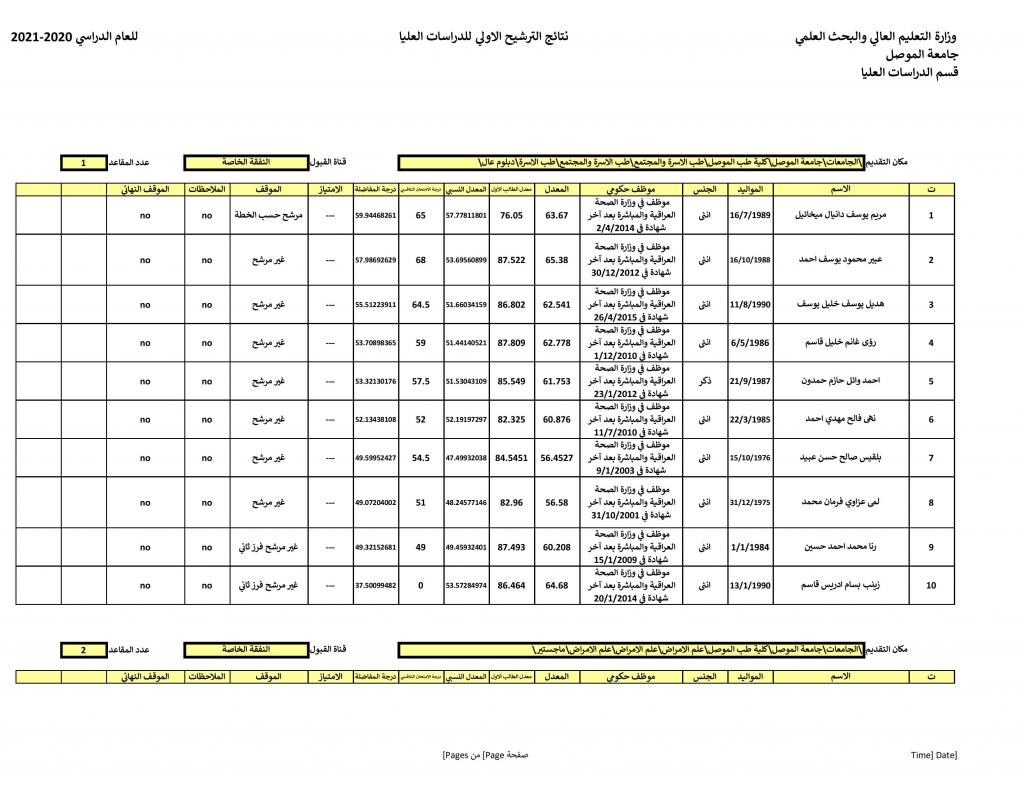 Results of the Initial Nomination for Postgraduate Studies in the College of Medicine for the Academic Year 2020-2021