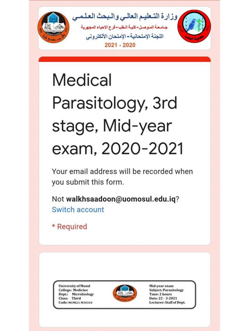 The mid-year examinations of the College of Medicine for the academic year 2020-2021 were started electronically on Monday 22nd March 2021. The first exam day included an exam of chemistry (for the first stage), parasites (for the third stage), gynaecology for (for the fourth stage), and for psychological (for the fifth stage). The examined students entered the examination platform prepared for each subject through the official university e-mail. During the examination, the Scientific Vice-Dean of University of Mosul, Prof Dr Munir S. Taha, and the Dean of the College, Prof Dr Basil M. Nathir Saeed conducted some direct meetings with the students. On the other hand, the students expressed their satisfaction with the smooth running of the exam without any obstacles. The exams were supervised by the Scientific Vice-Dean, Assistant Prof Dr Humam Gh. Ibrahim, and in the presence of the Administrative Vice-Dean, Assistant Prof Dr Hazim Kh. Al-Allaf in addition to the heads, rapporteurs and general teaching staff of the concerned departments and the liaison member of the university’s electronic team with members of the college’s electronic examination committee. All wishes to our dear students of luck and success if Almighty Allah willing.