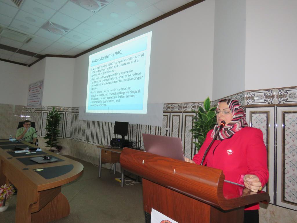 The symposium consisted of an introductory lecture by the Head of the Department, Prof Dr Imad A. Thanoun, entitled “Milk of Thistle.” After a short break, the scientific session started, headed by Assistant Prof Dr Shamil H. Othman, and included three lectures. The first is for the Lecturer Dr Nada S. Mahmoud entitled “Activity Based Protein Profile.” The second lecture was given by the Lecturer Dr Shatha H. Mohamed entitled “N-Acetylcysteine (NAC): A Promising Treatment for Many Psychiatric Disorders”. Then the conclusion was held with the department’s rapporteur, the Lecturer Dr Ibrahim M. Faisal, and his lecture entitled “The Growing Importance of Biologics.” Then, after the end of the session, there was given a chance to questions, discussions and interpositions by the attendees.