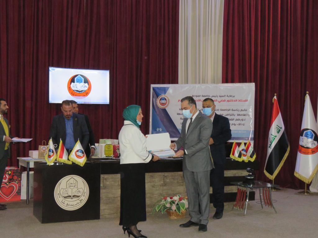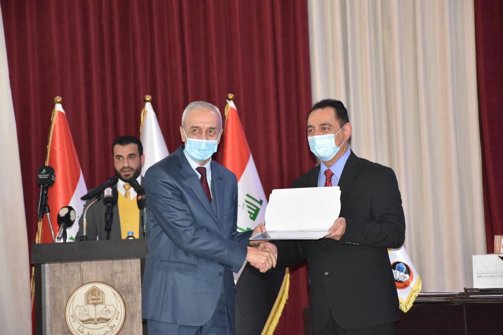 Under the patronage and presence of the President of University of Mosul, Prof Dr Qusay K. Al-Ahmadi, and in the presence of the Presidents of University of Nineveh and Northern Technology and members of the councils of the aforementioned universities, the university held a special ceremony for an elite of its scholars on Tuesday 26th January 2021. The celebration began with verses from the Holy Quran, then a stopping a moment to read Surat Al-Fatihah as a tribute to the souls of the martyrs. After the words of welcome, the President of University honored a number of former university presidents, its assistants and its scholars who held advanced positions in the Ministry of Higher Education and Scientific Research. From the Faculty of Medicine at University of Mosul, among the honourees were the former President of Nineveh University, Prof Muzahim Q. Al-Khayyat (the former Dean of the College), and the former Scientific Vice-President of University of Mosul, Prof Dr Nazar M. Qiba’ (Former Head of the Department of Medicine).In the same field, the Dean, Prof Dr Basil M. Nathir Saeed, honored both Assistant Prof Dr Muzahim F. Al-Chitchi (the former Dean of the College) and Prof Dr Bybin Kh. Al-Silifani (Dean of the former College). The university’s holding of this special celebration is coincided with International Education Day.