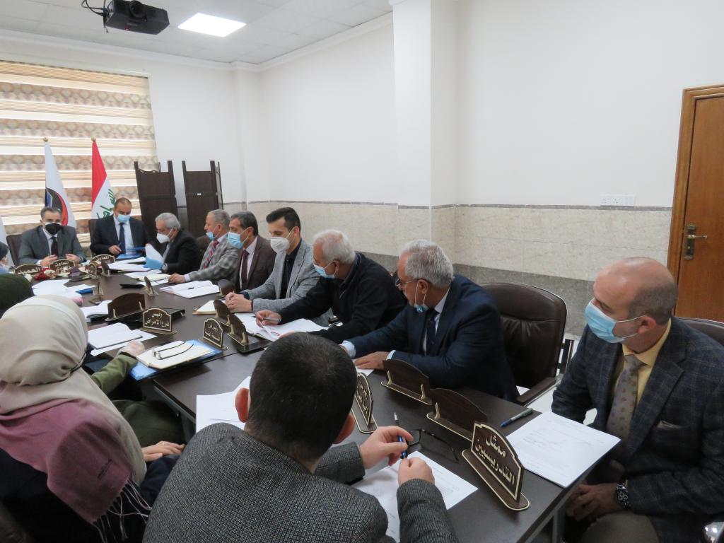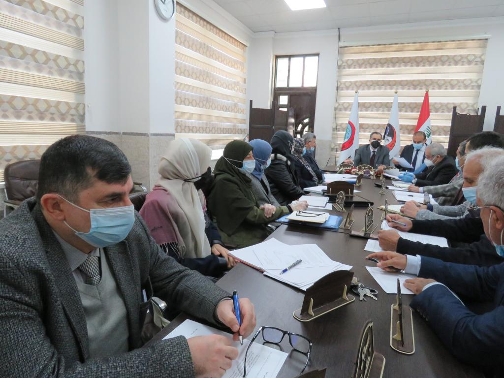 The College of Medicine Board held its sixth meeting for the academic year 2020-2021 on Tuesday, December 8th 2020. The meeting was chaired by the Dean Prof Dr Basil M. Nathir Saeed, and in the presence of the Scientific Vice-Dean (Secretary of the Council) Assistant Prof Dr Humam Gh. Ibrahim and the other members of the Council. Initially, congratulations were exchanged on the occasion of the start of the new academic year 2020-2021. After that, the decisions and directives of the last University Council meeting were reviewed. Emphasis was also done on the application of blended learning where a detailed explanation was made regarding the mechanisms of its application and the platforms used with an indication of the number of students admitted. Also, the clinical training program for sixth-stage students, including equivalent degree students for graduates from outside Iraq was viewed. The Council also approved a special ceremony to honor the retired faculty teaching staff and employees for the years 2019 and 2020 on Sunday December 13rd 2020.