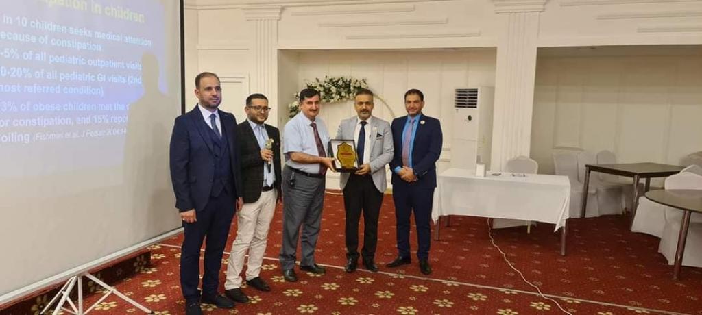The symposium was chaired by a professor from the Department of Paediatrics, College of Medicine, Assistant Prof Dr Mazin M. Fawzy Al-Sarraf and included one scientific lecture delivered by a professor from the Department of Surgery, College of Medicine, Lecturer Dr Bassam Kh. Al-Hajjar, entitled “Constipation in Children”.