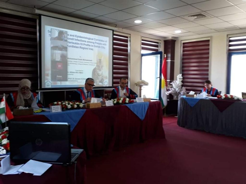 The College of Medicine Participates in the Discussion of a Doctoral Thesis at the University of Duhok on the Difference in the Ratio of Antibodies and Interleukin-10 in People with Cat Disease
