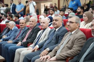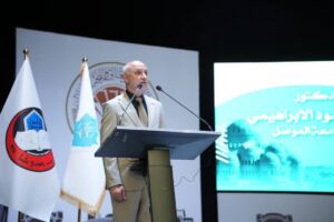 The ceremony was attended by prominent academic figures, including Professor Dr. Muzahim Al-Khayat, Head of the Parliamentary Committee on Higher Education, Professor Dr. Waheed Mahmoud Al-Ibrahimi, President of the University of Mosul, Professor Dr. Badee Ali, President of Al-Hadba University, and Professor Dr. Osama Al-Mashhadani, President of Nineveh University, along with a number of deans, faculty members, and students.