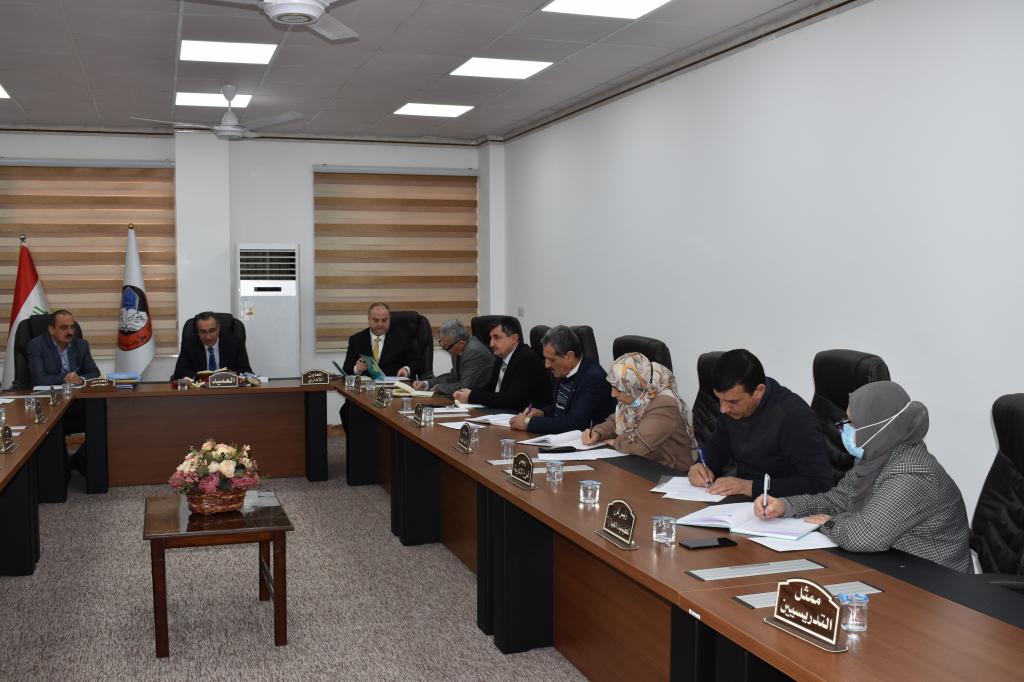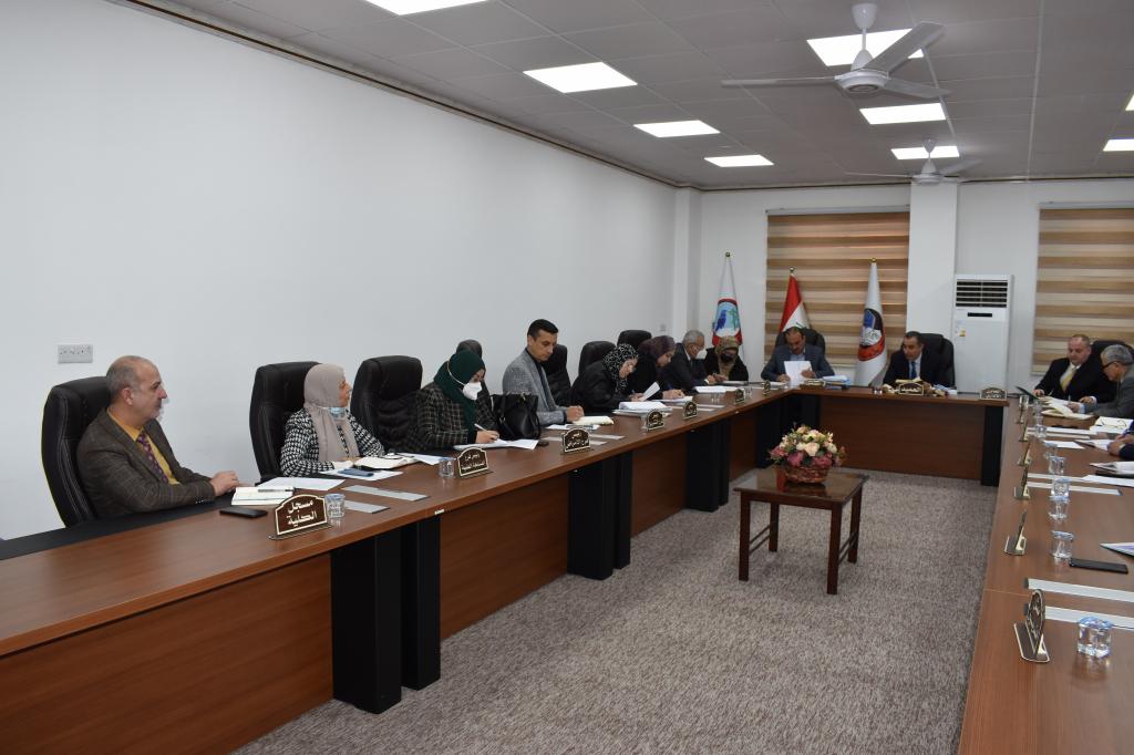 The College of Medicine Council held its thirteenth regular meeting for the academic year 2021-2022 on Sunday, 13th March 2022. Initially, the Secretary of the Council reviewed the report of the Examination Evaluation Committee regarding the mid-year exams to avoid future defects. The annual evaluations of teaching staff for five different scientific departments were also approved.In the affairs of postgraduate studies, a master’s degree in anatomy was awarded. A committee to discuss a master’s student in the Department of Medical Physiology was also approved as well as other issues and points were discussed in the session.The meeting was chaired by the Dean of the College, Prof Dr Basil Mohammednather Saeed, in the presence of the Scientific Vice-Dean (Secretary of the Council), Assistant Prof Dr Humam Gh. Ibrahim, and the Administrative Vice-Dean, Assistant Lecturer Dr Karam T. Tawfiq in addition to other members of the council.