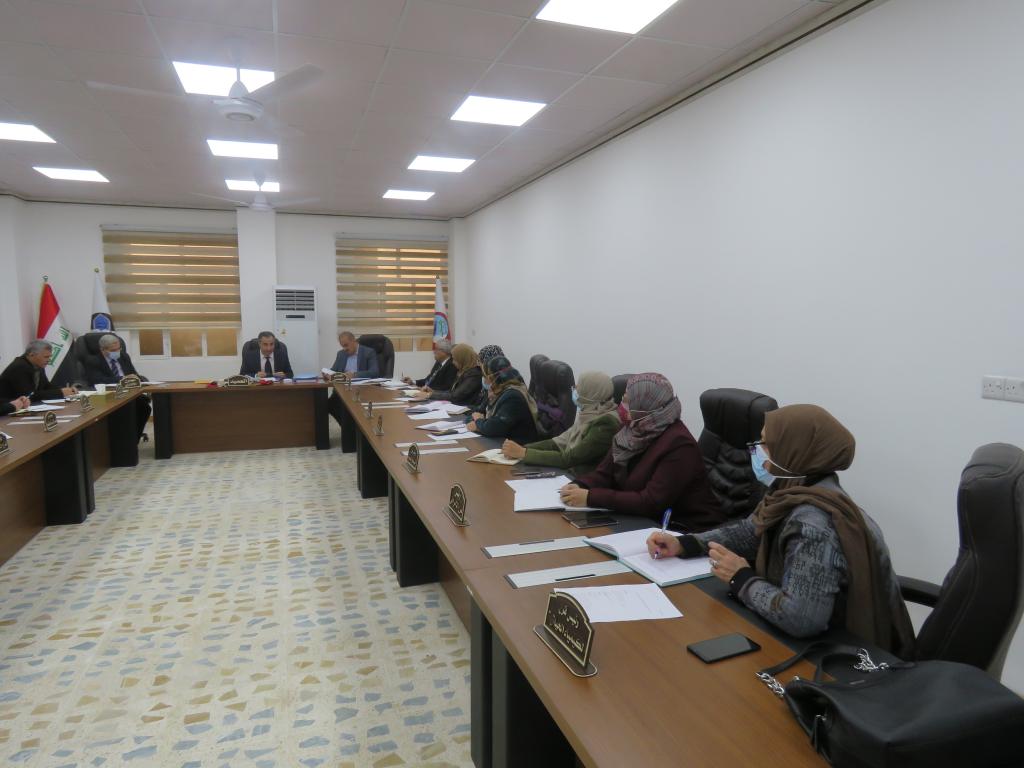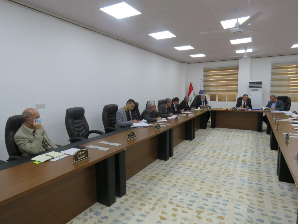 The meeting was chaired by the Dean of the College, Prof Dr Basil Mohammednather Saeed, in the presence of the Scientific Vice-Dean (Secretary of the Council), Assistant Prof Dr Humam Gh. Ibrahim, and Administrative Vice-Dean, Assistant Prof Dr Hazim Kh. Al-Allaf in addition to other members of the council.