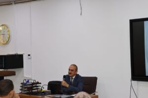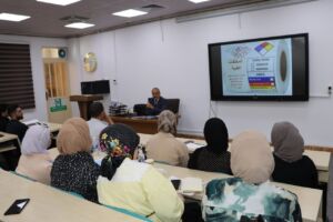Assistant Professor Dr. Humam Ghanim Ibraahim, Dean of the College of Medicine, presented a lecture on medical waste to postgraduate students at the University of Mosul who have completed their preparatory year. This lecture is part of the chemical safety course and aims to introduce students to the importance of proper handling of medical waste and its impact on public health and the environment.