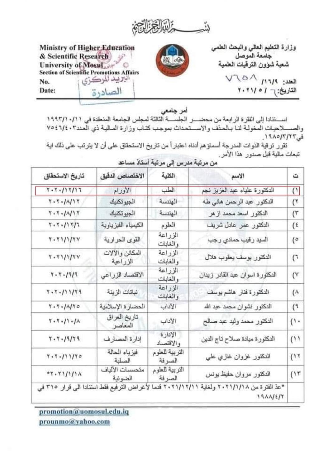 The Deanship of the College of Medicine Congratulates Doctor Alia Abdulaziz Najm for Her Promotion to the Rank of Assistant Professor