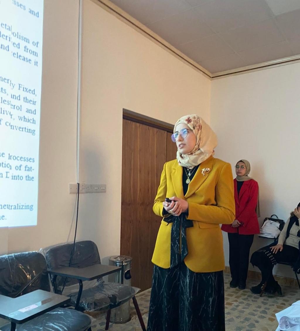 The Department of Medical Physiology conducted a seminar for students of the second grade on Monday, 14th March 2022.The seminar entitled “Liver Physiology” was presented by the two students, Aisha Fawaz and Zahra Muhammad, and under the supervision of the Lecturer Dr Raga’ A. Younis.This scientific activity is part of the educational requirements for undergraduate students. Among the attendees were the Head of the Department, Assistant Prof Dr Afra’ M. Al-Amin as well as the coordinator and the teaching staff concerned, and a number of students of the aforementioned grade.