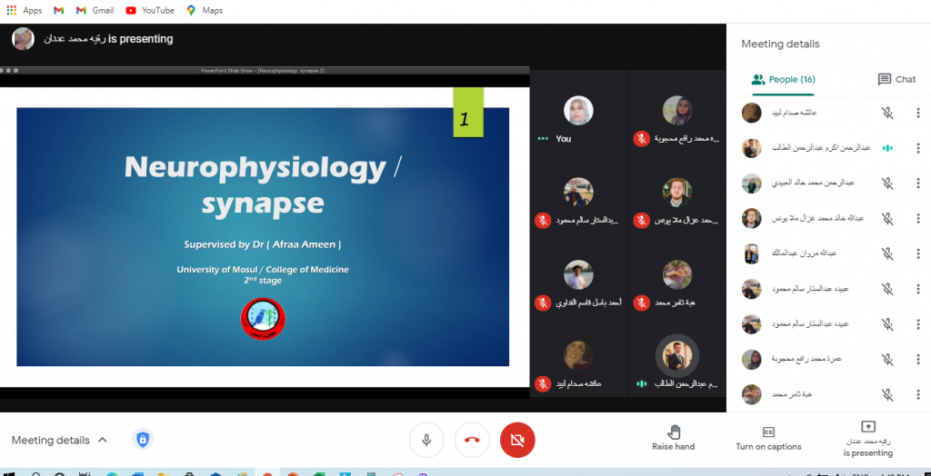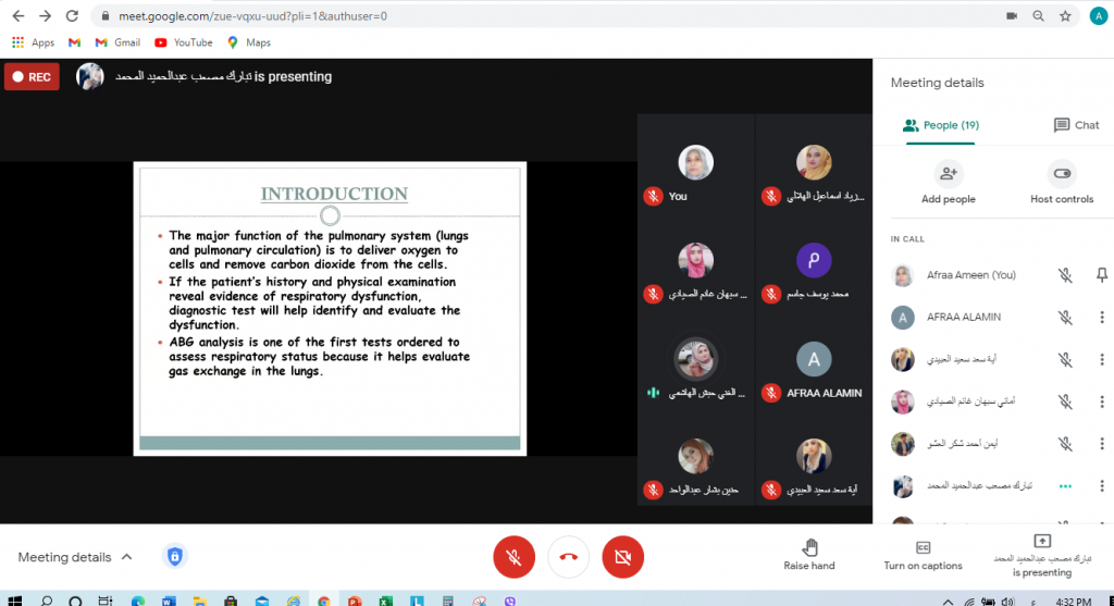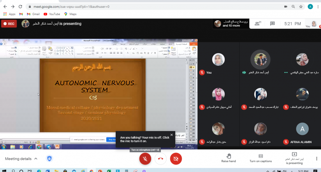 The Department of Physiology held several virtual student seminars for the first semester of the academic year 2020-2021. In which various topics were discussed in the field of physiology, such as blood gases and their analysis, the autonomic nervous system, blood types, thyroid dysfunction, growth hormone and its effect, and the parasympathetic nervous system, its function and effect as well as other topics.