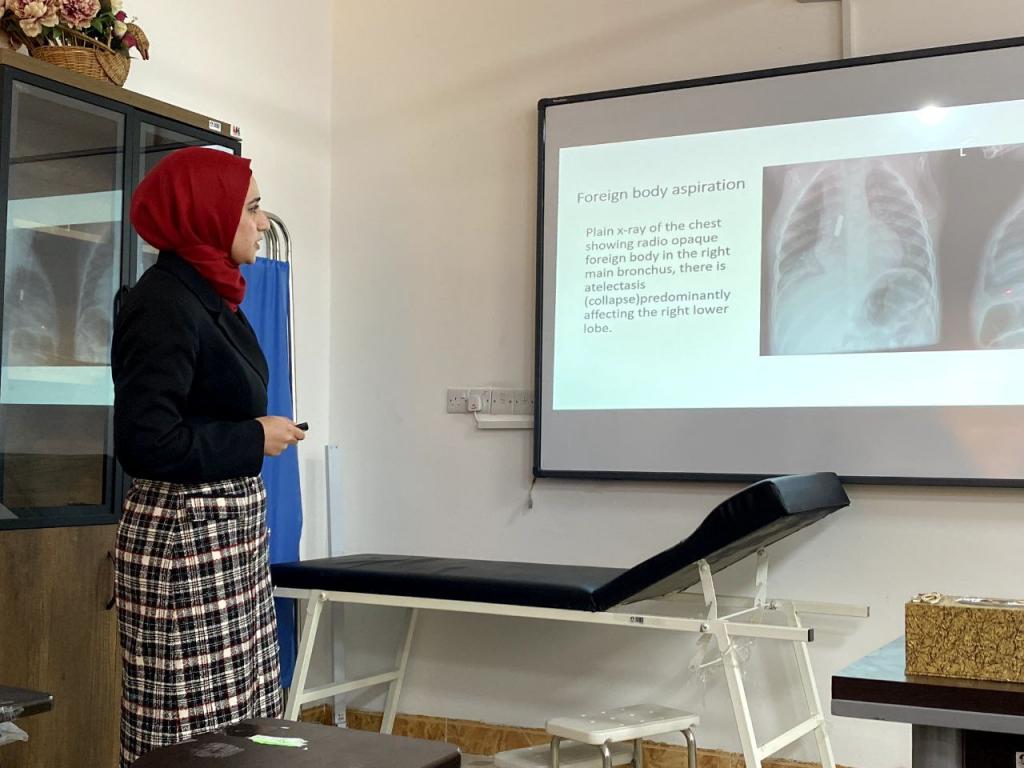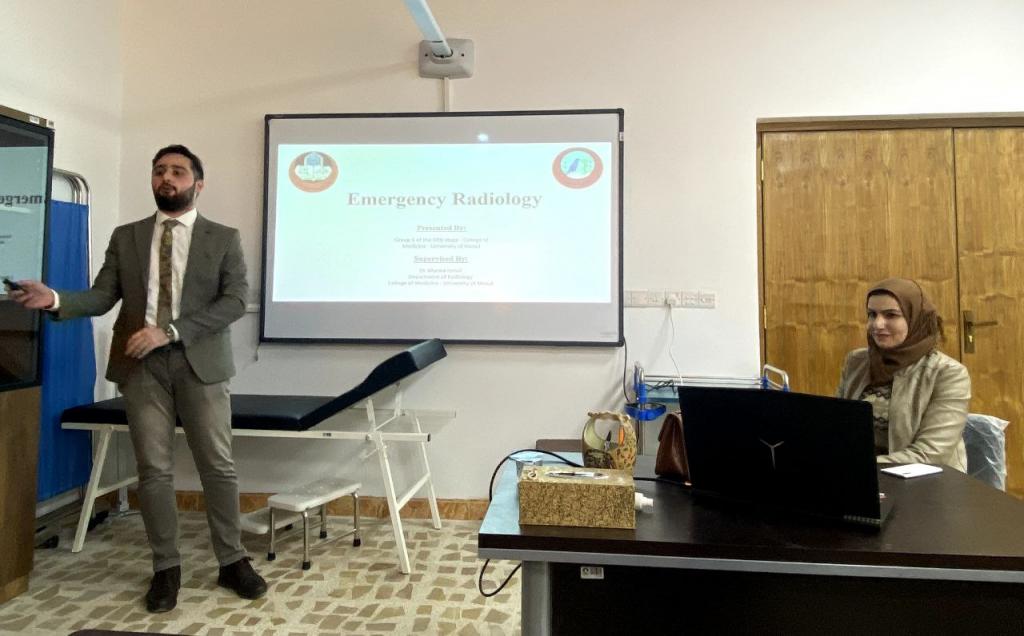 The Department of Radiology introduced a student seminar on emergency radiology on Monday, 14th March 2022. A number of fifth-grade students introduced a seminar in which they discussed emergency cases that are diagnosed by medical imaging with its various devices such as sonar, x-rays and scanners under the supervision and presence of the Head of the Department, the Lecturer Dr Marwa I. Khalaf.