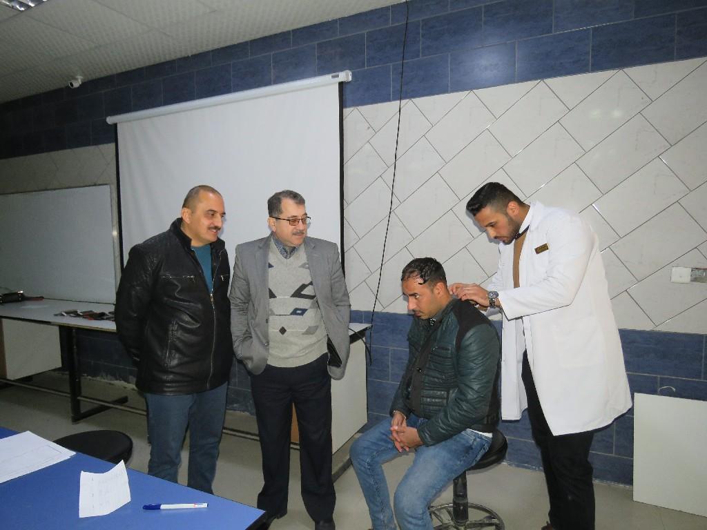 In the presence of the Vice- Dean for Scientific Affairs, Assistant Prof Dr Humam Gh. I. Zubeer, Head of the Department of Surgery Prof Dr Samir I. al-Saffar, and the Rapporteur of the Department of Surgery Assistant Prof Dr Yaqdan Z. al-Saleem, the Department of Surgery conducted the end-of-course exam for Group B of Sixth year students for the academic year 2019-2020 on Wednesday, 11 November 2019. The summary of the “OSCI” test is that the student subjects to the exam by passing through the stations (divisions) of surgery, where the student gives only 4-5 minutes per station.