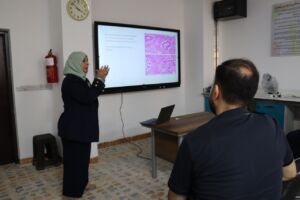The course aimed to introduce participants to the stages of tissue cutting and fixation methods. This initiative supports Sustainable Development Goals (SDGs) 3 (Good Health and Well-being) and 4 (Quality Education) by enhancing the skills of medical professionals and promoting high-quality education in the field of pathology.