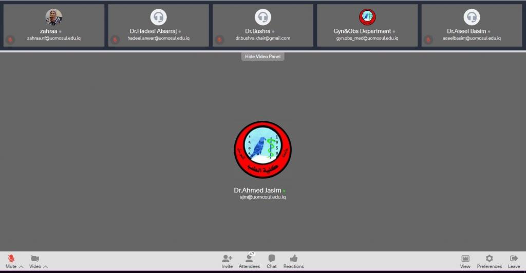 The symposium was held virtually under the auspices of the President of University of Mosul, Prof Dr Qusay K. Al-Ahmadi, and under the supervision and presence of the Dean of the College, Prof Dr Basil Mohammednather Saeed. It was also attended by some members of the college’s council, many medical teaching staff from the universities of Mosul and Nineveh, some specialized doctors of Nineveh Health Department as well as postgraduate students.