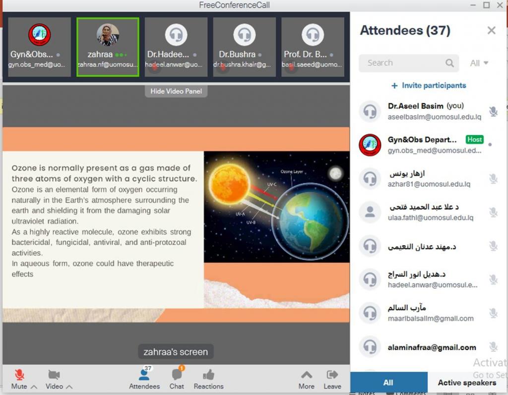 The second is for the Lecturer Dr. Zahraa N. Fathi entitled “Ozone in Gynecology and Obstetrics”