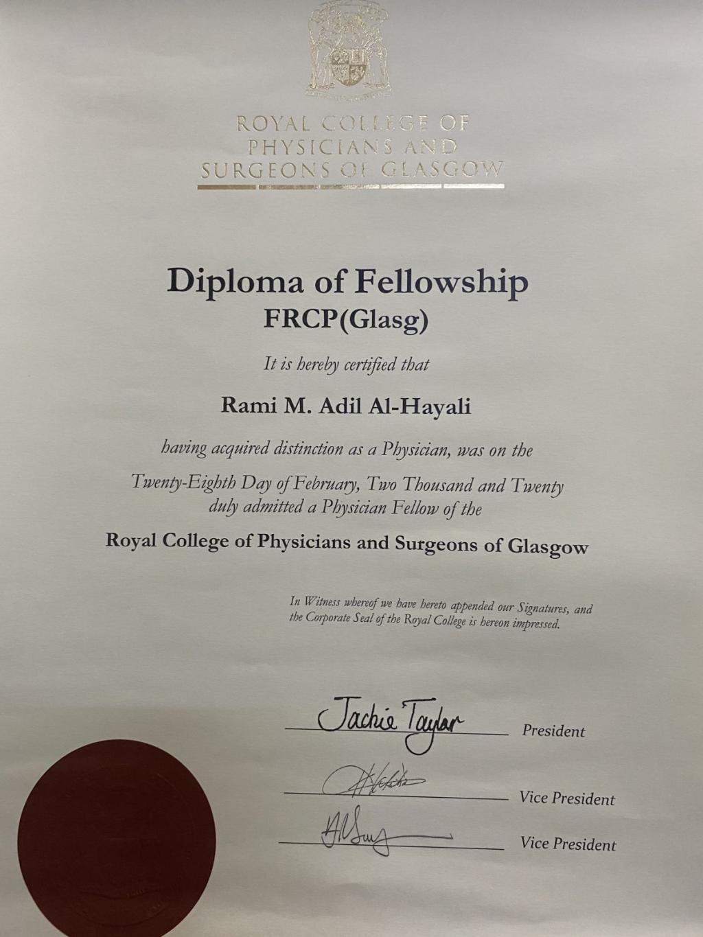 Two Professors from the College of Medicine Obtaining a Fellowship from the Royal College of Internal Medicine FRCP