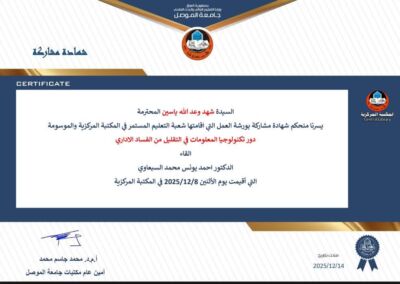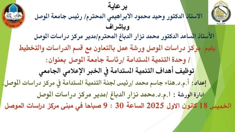 Mosul studies Center is one of the prestigious centers, and it has an active role in disseminating the intellectual, historical, and civilizational products of Mosul at local and international levels, as well as civilizational communications with other entities that have free humanitarian thought. It peruses the policy of openness towards other cultures in Mosul. It supplies university students with scientific advice, specialized courses, and publications that help them and other researchers uncover the civilizational, historical, and legacy landmarks of Mosul. It also took part in establishing a database and putting it at the researchers’ disposal. Besides opening an intellectual and cultural canal of communication between the university and the community.