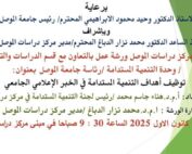 As part of the efforts of the Mosul Studies Center, represented by its Director, Dr. Mohammed Nizar Al-Dabbagh, and in cooperation with the Studies and Planning Department – Sustainable Development Unit/University of Mosul, to encourage center staff and involve them in work-related training courses, Ms. Shahd Waadallah Yassin, the librarian at the Mosul Studies Center, received a certificate of participation for her attendance and participation in the workshop held by the Central Library – University of Mosul – Continuing Education Division, entitled “The Role of Information Technology in Reducing Administrative Corruption,” on Monday, December 8, 2025.