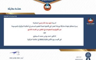 #Certificate_of_Participation ……. As part of the efforts of the Mosul Studies Center, represented by its Director, Dr. Mohammed Nizar Al-Dabbagh, and in cooperation with the Studies and Planning Department - Sustainable Development Unit/University of Mosul, [Read More]