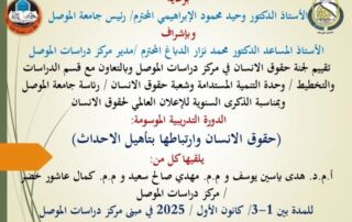 #Training_Course ……. Under the patronage of Professor Dr. Waheed Mahmoud Al-Ibrahimi, President of the University of Mosul And under the supervision of Assistant Professor Dr. Mohammed Nizar Al-Dabbagh, Director of the Mosul Studies Center Evaluation [Read More]