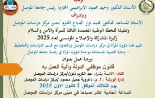 #Joint_Workshop ……. Under the patronage of Professor Dr. Waheed Mahmoud Al-Ibrahimi, President of the University of Mosul, and the supervision of Assistant Professor Dr. Mohammed Nizar Al-Dabbagh, Director of the Mosul Studies Center, Professor Dr. [Read More]