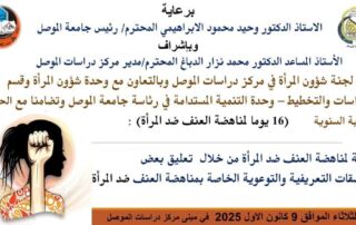 #Posters Under the patronage of Professor Dr. Waheed Mahmoud Al-Ibrahimi, President of the University of Mosul, and the supervision of Assistant Professor Dr. Mohammed Nizar Al-Dabbagh, Director of the Mosul Studies Center, the Women's Affairs [Read More]