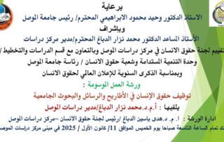 #Workshop ……………. Under the patronage of Professor Dr. Waheed Mahmoud Al-Ibrahimi, President of the University of Mosul, and under the supervision of Assistant Professor Dr. Mohammed Nizar Al-Dabbagh, Director of the Mosul Studies Center, the [Read More]