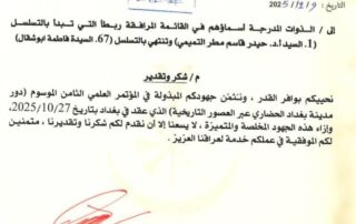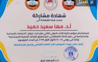 #Certificate_of_Participation ……. As part of the efforts of the Mosul Studies Center, represented by its Director, Dr. Mohammed Nizar Al-Dabbagh, and in cooperation with the Studies and Planning Department - Sustainable Development Unit/University of Mosul, [Read More]