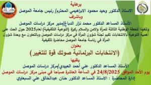 Mosul Studies Center Announces Educational Lecture ..... The Mosul Studies Center, under the patronage of Prof. Dr. Wahid Mahmoud Al-Ibrahimi, President of the University of Mosul, and under the supervision of Assistant Professor Dr. Mohammed [Read More]