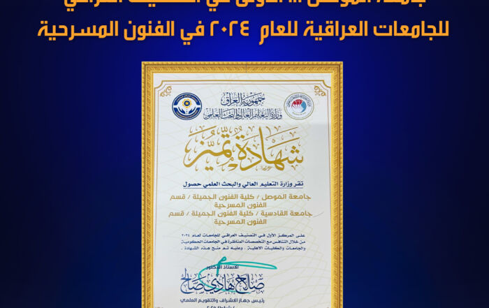 A new achievement has been recorded by the University of Mosul and the College of Fine Arts / Department of Theater Arts by obtaining [Read More]