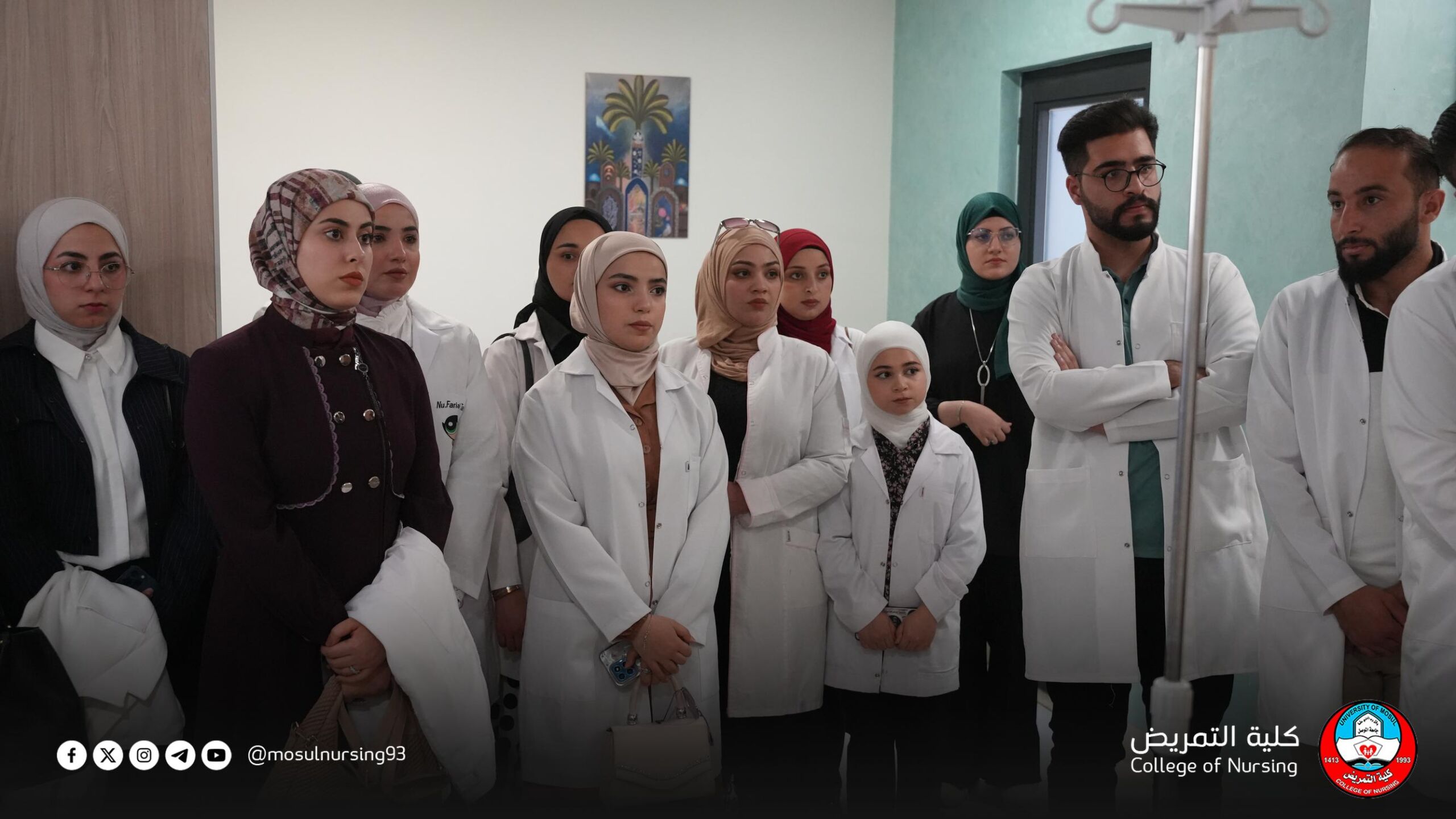 Under the supervision of the Dean of the College of Nursing, Dr. Tahsein Muhsin Hussein, and in alignment with the Sustainable Development Goals — particularly Goal 3: Good Health and Well-being, and Goal 4: Quality Education — the Department of Clinical Nursing Sciences at the College of Nursing organized a field visit for nursing students to Al-Hayat International Hospital.