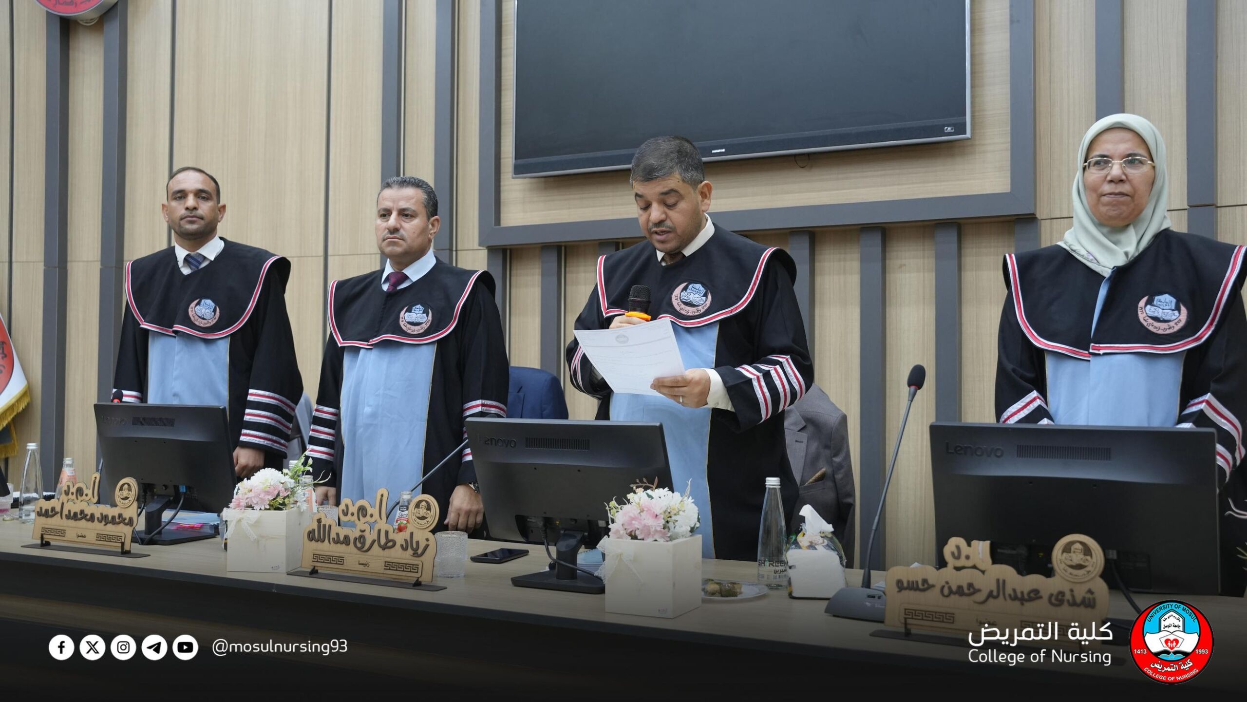 “Depressive Disorders Among Nurses Working in Pediatric Wards in Mosul Hospitals” and the defense was held in the discussion hall at the College of Nursing / University of Mosul.