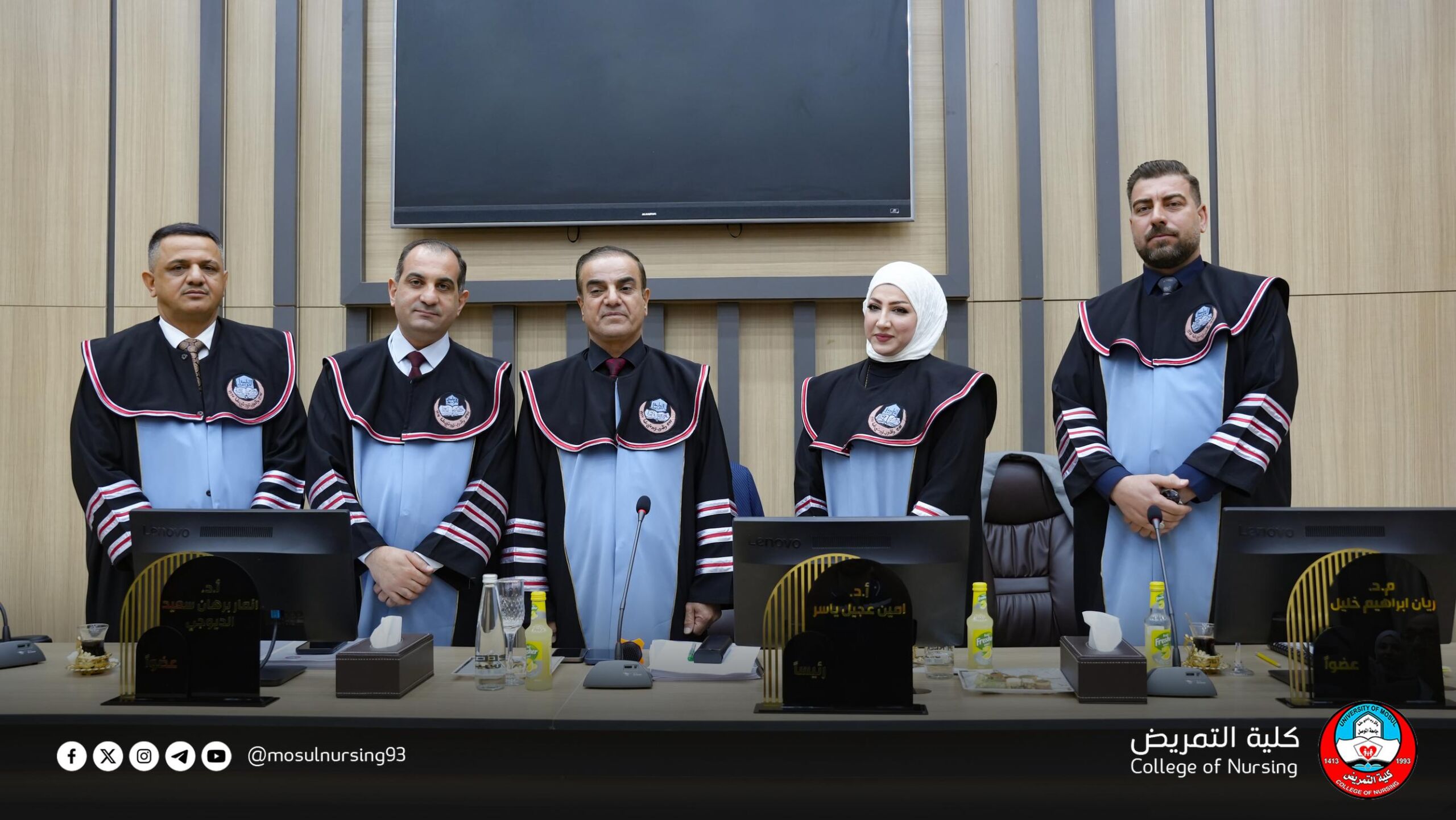 At the end of the session, the committee decided to award the student Ruba Shakir Ghanem Al-Taie a Master’s degree in Nursing Sciences, after making the required revisions.