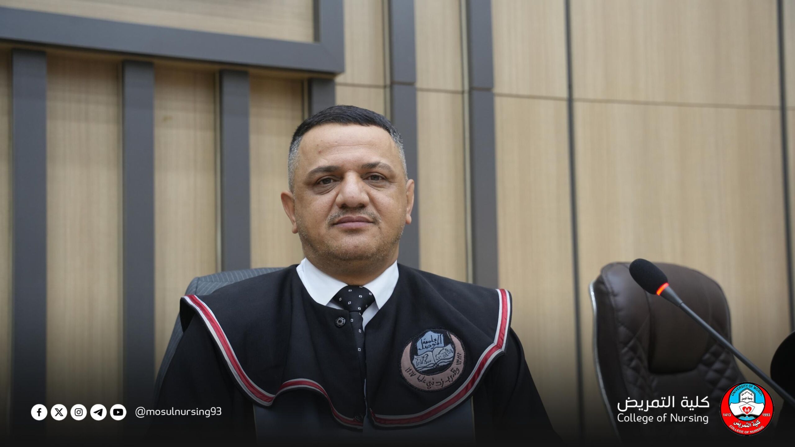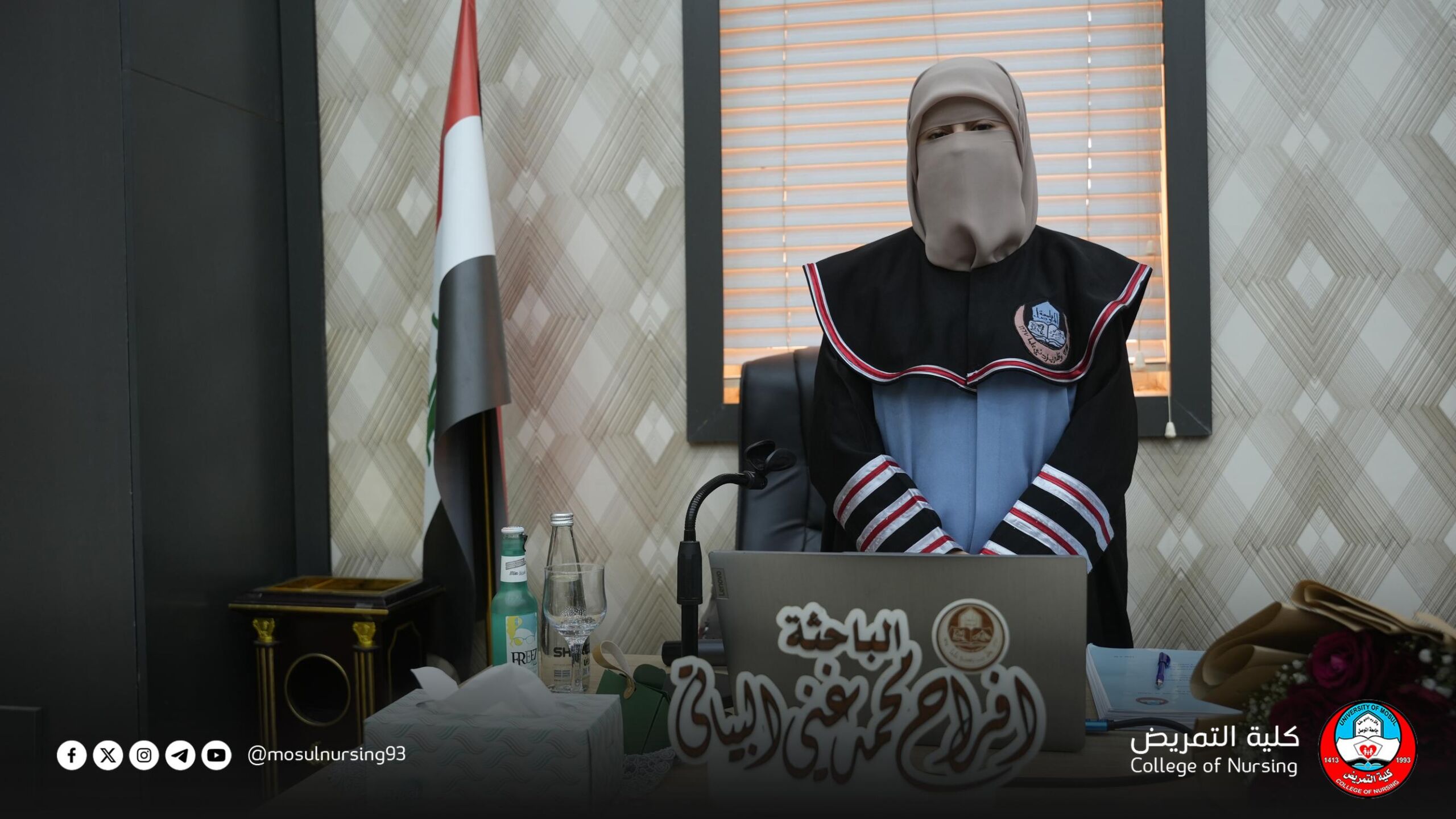In the presence of Assistant Professor Dr. Tahsein Muhsin Hussein, Dean of the College of Nursing, the master’s thesis defense of student Afrah Mohammed Ghani, titled: