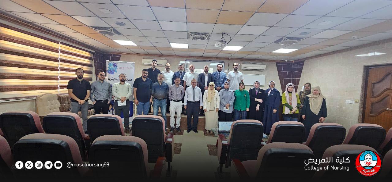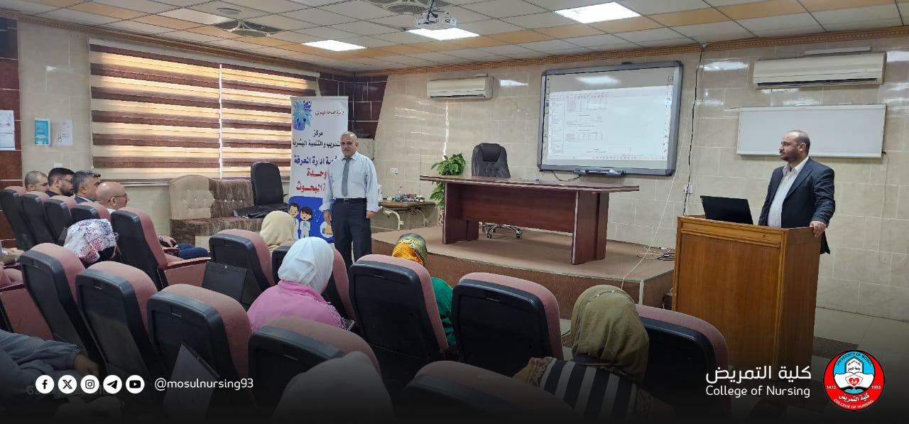 With the participation of the Registrar of the College of Nursing at the University of Mosul, Assistant Lecturer Ahmed Meshaal Mohammed, the Center for Training and Human Development / Research Management Unit at the Nineveh Health Directorate organized a scientific workshop entitled:
