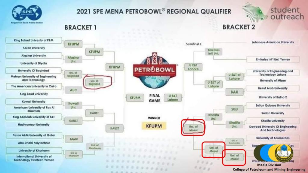 Mosul University Team (College of Petroleum and Mining Engineering) in the PetroBowl International Championship Regional Qualifiers 2021