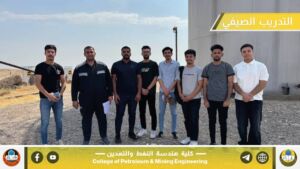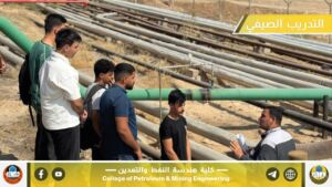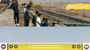 With the support of the Dean of the College of Petroleum Engineering and Mining, Assistant Professor Dr. Ma’an Hassan Al-Majid, the students of the Petroleum Reservoir Engineering Department at the College continue their ongoing summer training at the Qayyarah Oil Field.