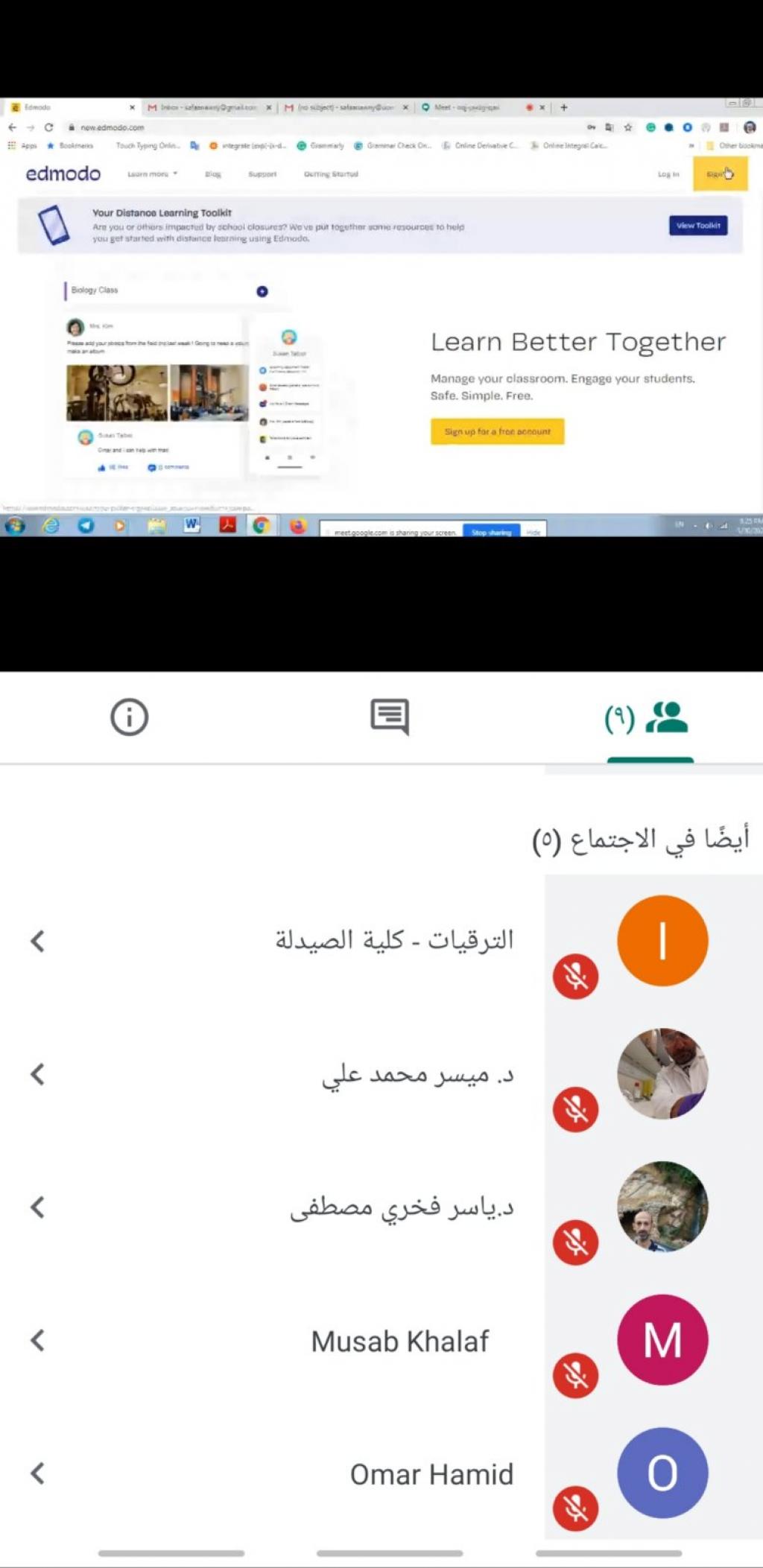 The College of Pharmacy preparing for the online exams with workshops on the edmudo platform