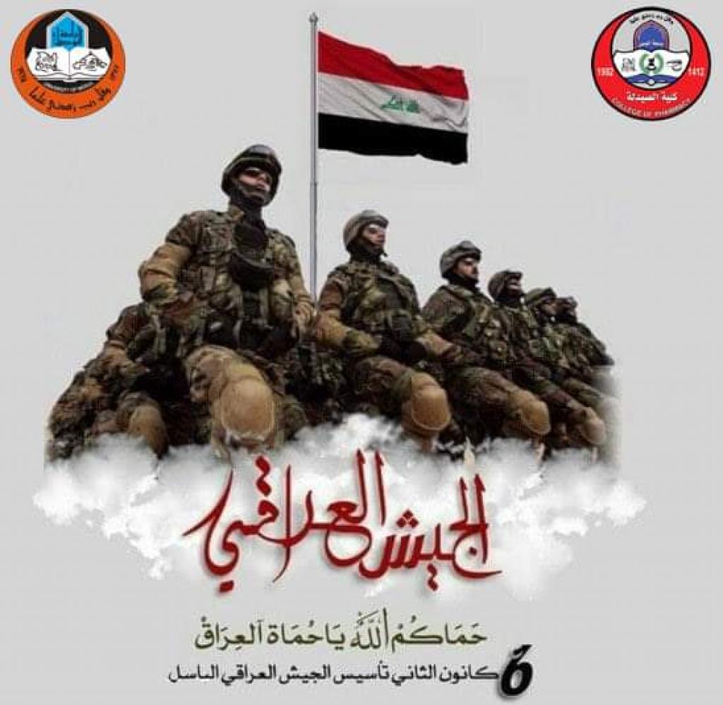 The College of Pharmacy represented by the Dean of the College, the Asst. Prof. Zena Abdulmoneim abdulmajeed expresses the most sincere congratulations to the Iraqi people and the Iraqi Military Forces on the occasion of the 100th anniversary of the establishment of the Iraqi Army which has always defended Iraq and the Arab Homeland heroically.May the Almighty Allah give mercy on the martyrs of the Iraqi Army.