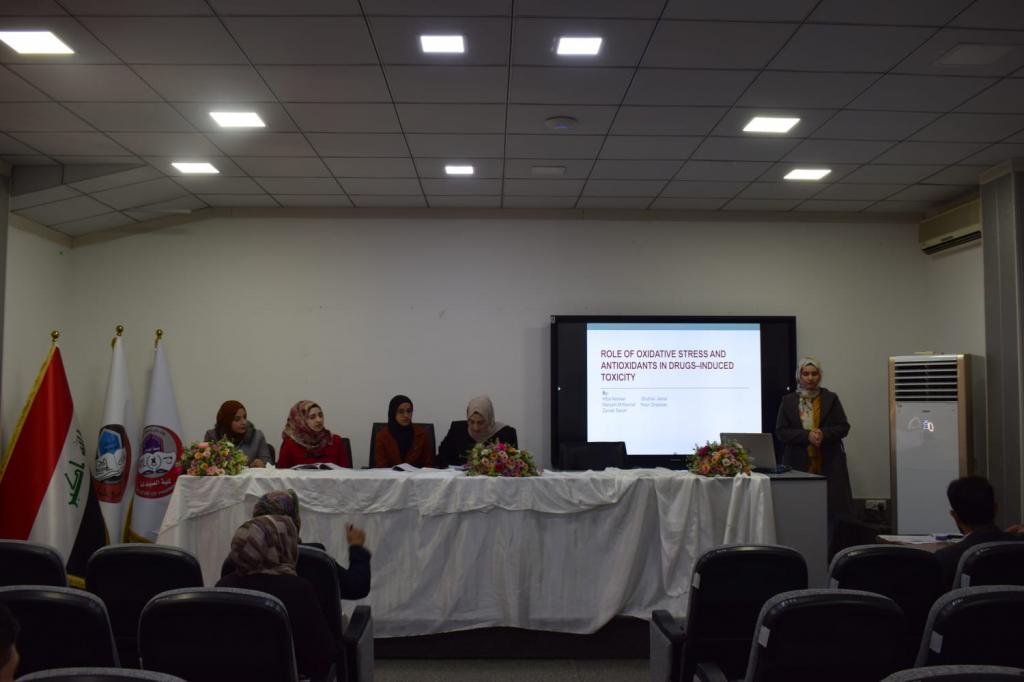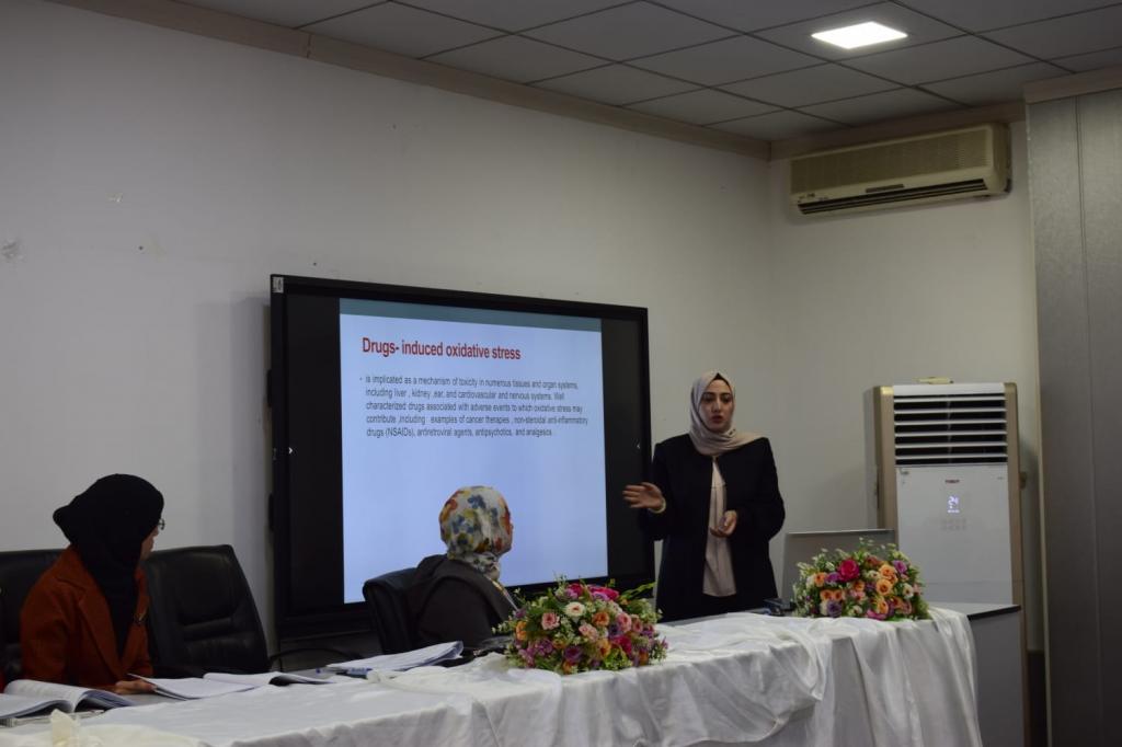 On Thursday, March 24, 2022, the College of Pharmacy – University of Mosul, held discussions of graduation projects for fifth-year, under the direct supervision of the Dean of the College, Assistant Professor Dr. Zina AbdulMonem AbdulMajeed.The discussions were divided into 6 scientific committees representing the six departments of the college. Graduation projects distributed by dividing the students into groups, each group is supervised by one of the college professors. These projects aim to enhance the students’ scientific ability and provide them with the skill of conducting and writing research to develop their practical and academic capabilities.