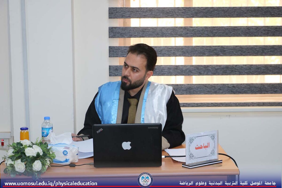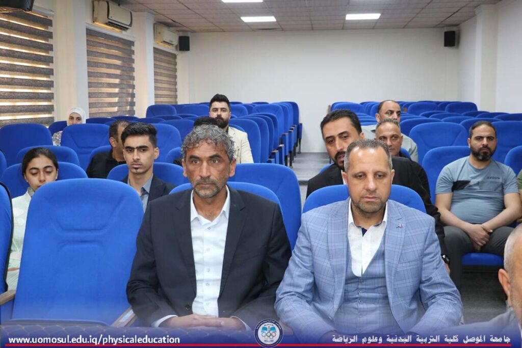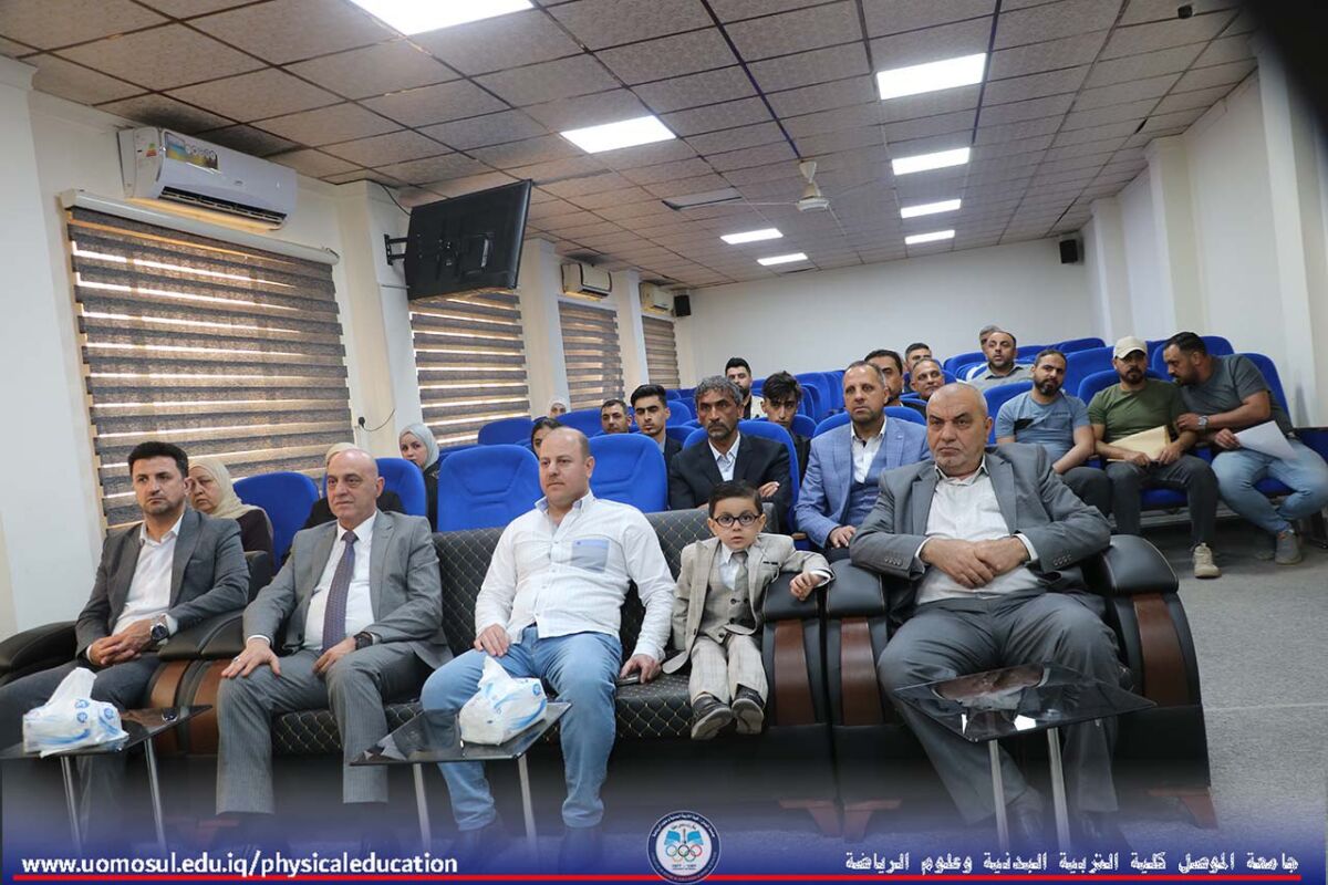 The College of Physical Education and Sports Sciences discussed a doctoral thesis on “Building a Cross-Sectional Model for the Selection of Football Players” on Thursday, April 24, 2025. Professor Nibras Younis Muhammed, Dean of the College of Physical Education and Sports Sciences, and a number of faculty members attended the discussion. The thesis, presented by student Omar Zuhair Ahmed, focused on providing a scientific, data-based model for selecting football players. The focus is on identifying the required characteristics for each age group and identifying talents through analyzing physical, functional, skill, physical, mental, and psychological aspects. This contributes to raising the level of athletic performance in the long term and better preparing players to participate in sporting competitions at the highest levels. The study also aimed to identify the most important determinants and variables in selecting athletic talents in football, according to the stages of athletic selection for talented football players. It also aimed to develop a model for selecting athletic talents according to the stages of athletic selection for football players, and to develop tables and standard levels for selecting athletic talents according to the stages of athletic selection for players. The discussion committee was chaired by Professor Dr. Dhurgham Jassim Muhammed, and included Professor Dr. Walid Khaled Rajab, Professor Dr. Subhan Mahmoud Ahmed, Professor Dr. Hassan Ali Hussein, and Professor Dr. Ahmed Hazem Ahmed, under the supervision and membership of Professor Dr. Makki Mahmoud Hussein.