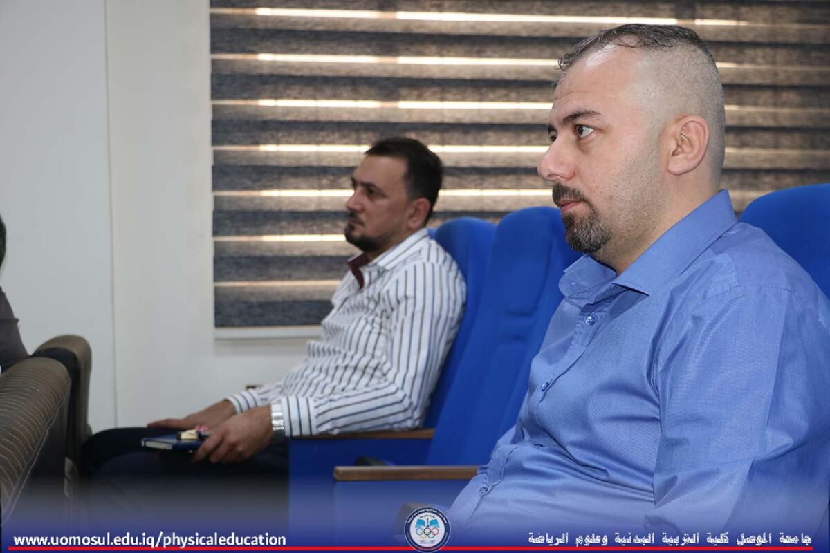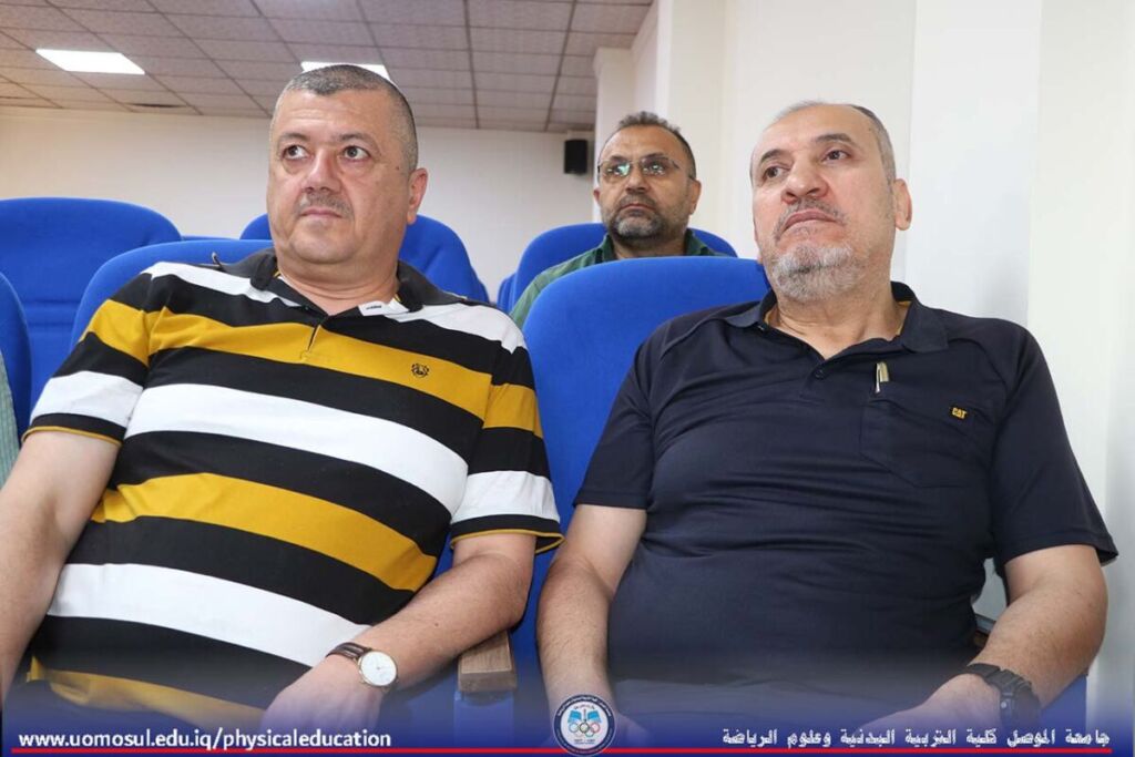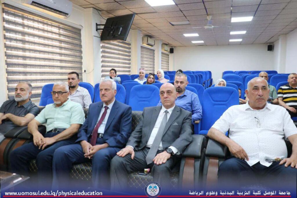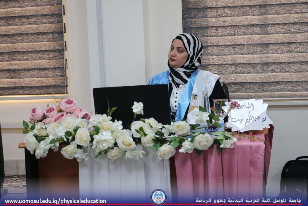 The College of Physical Education and Sports Sciences at the University of Mosul discussed a doctoral thesis on Sunday, May 4, 2025, on the effect of using self-engineering based on the holotropic technique in reducing self-doubt among female students in swimming classes. The thesis was attended by Professor Dr. Nibras Younis Mohammed, Dean of the College, and a number of faculty members.