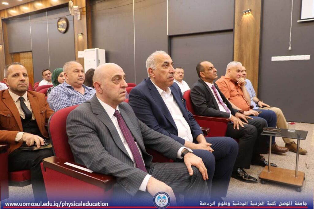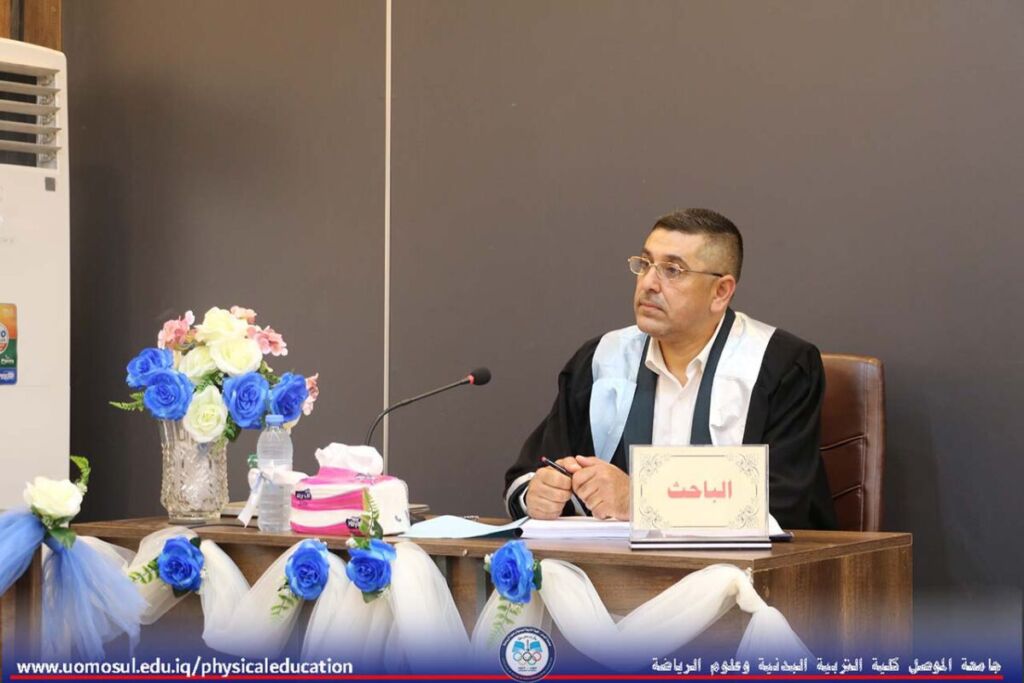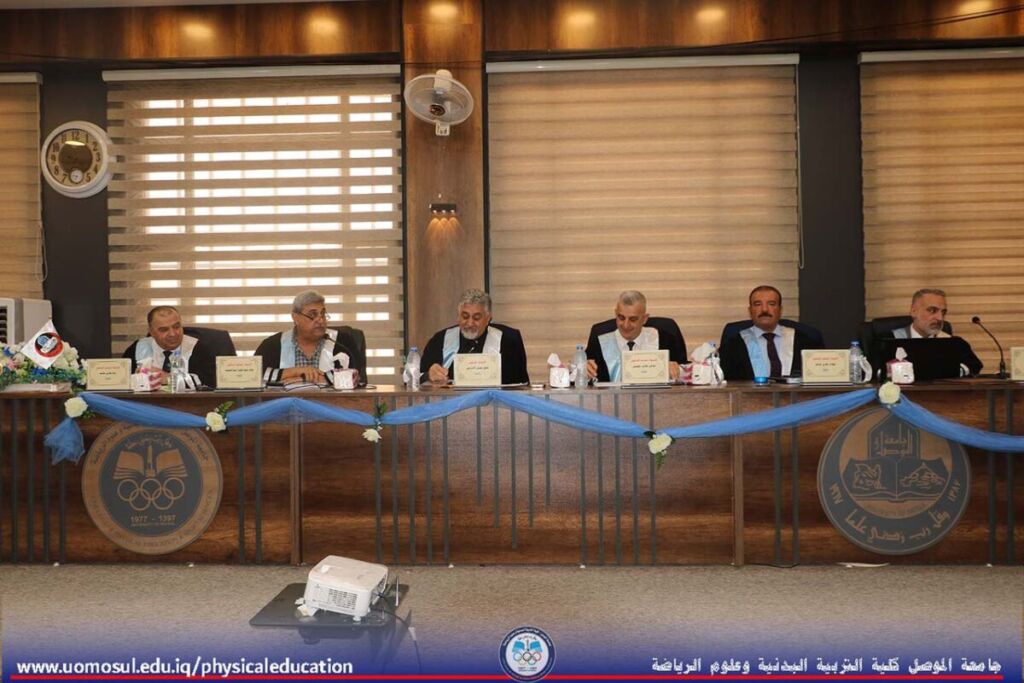 The College of Physical Education and Sports Sciences discussed a doctoral thesis entitled “The Effect of Specific Exercises According to the Classification of the Environment (Closed – Open) on Developing the Most Important Cognitive-Sensorimotor Abilities and Learning and Maintaining the Art of Skill Performance for Some Volleyball Skills” on May 14, 2025. Professor Nibras Younis Mohammed, Dean of the College, and a number of faculty members attended the discussion.
