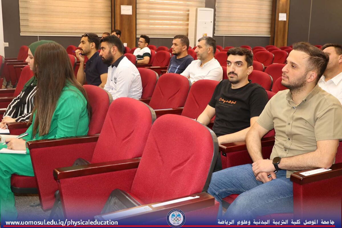 The College of Physical Education and Sports Sciences discussed a doctoral thesis entitled “The Effect of Specific Exercises According to the Classification of the Environment (Closed – Open) on Developing the Most Important Cognitive-Sensorimotor Abilities and Learning and Maintaining the Art of Skill Performance for Some Volleyball Skills” on May 14, 2025. Professor Nibras Younis Mohammed, Dean of the College, and a number of faculty members attended the discussion.