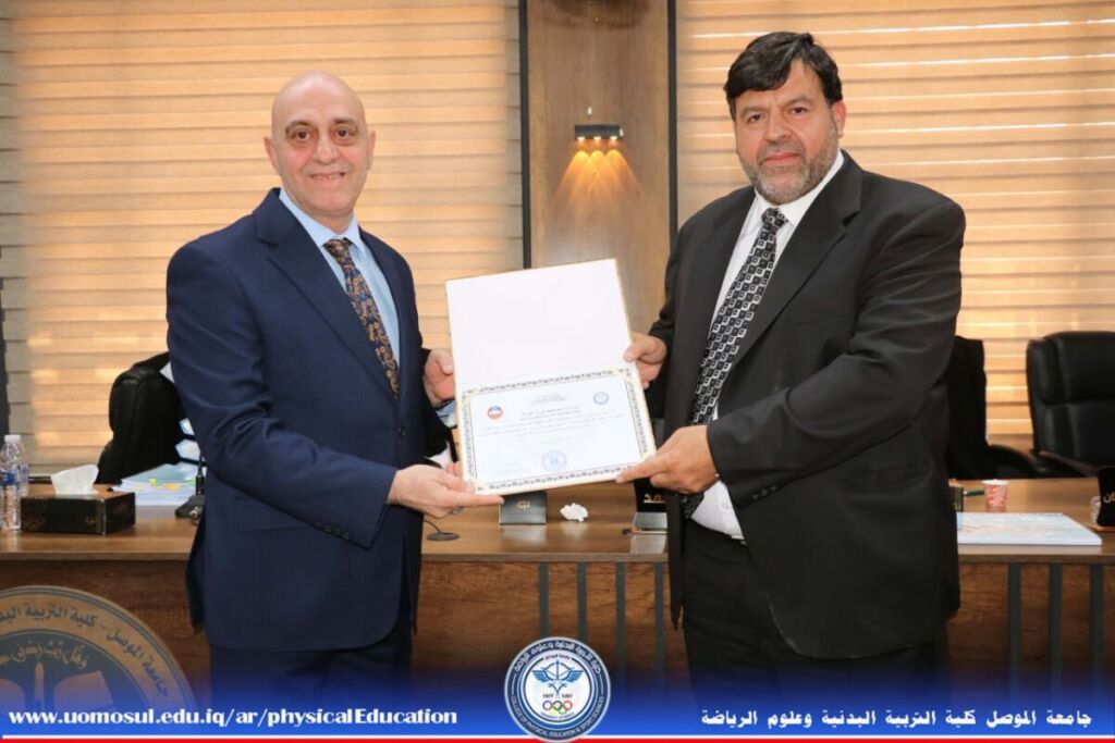 The College of Physical Education and Sports Sciences at the University of Mosul hosted a doctoral dissertation discussion on Monday, August 18, 2025, on “Play Therapy and Its Effect on Reducing Antisocial Behavior and Improving Some Social Skills among Special Class Students in Nineveh Education Schools.” The dissertation, submitted by student Bashar Jassim Muhammad Al-Abadi, addressed the design of a program based on play therapy to reduce antisocial behavior and improve social competence.