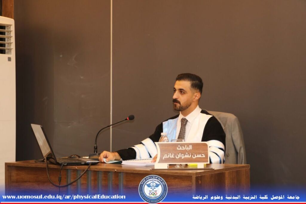 The thesis, presented by student Hasan Nashwan Ghanem, addressed the concept of relationships between heads and employees, as well as job burnout in the sports sector. It addressed an important segment of the population: employees in the Sports Talent Care Department. It provided a comprehensive explanation of the nature of the department’s work, as well as identifying statistics on the number of employees and the nature of their work to draw attention to this important segment of individuals.