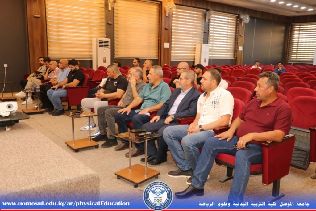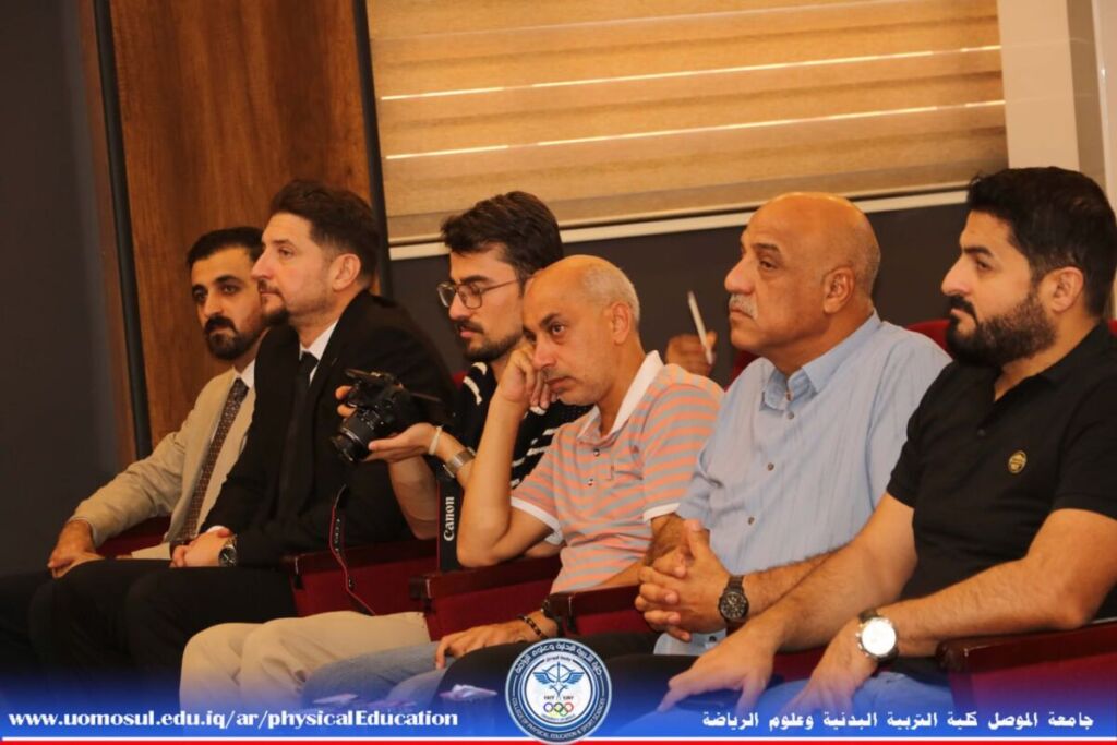 The College of Physical Education and Sports Sciences witnessed the discussion of a master’s thesis entitled “The Effect of Two Methods of Post-Amplification Exercises (P.A.P.) on Some Physical Qualities and Abilities and the Performance of a (50)-meter Freestyle Swimming for Iraqi National Team Swimmers” on Wednesday, August 27, 2025. Professor Dr. Nashat Bashir Ibrahim, Assistant Dean for Administrative and Financial Affairs, and a number of college instructors attended the discussion.