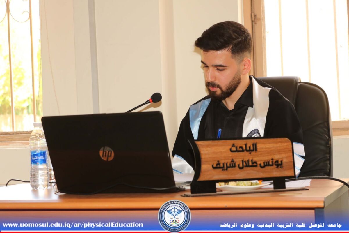 The thesis, submitted by student Younis Talal Sharif, addressed the design of special skill exercises using a ball launcher device in conjunction with a light stimulator. The study addressed modern technology that can be used in sports training and to develop players’ performance through it. It aimed to identify significant differences between the pre- and post-tests in physical and skill variables of the experimental group.