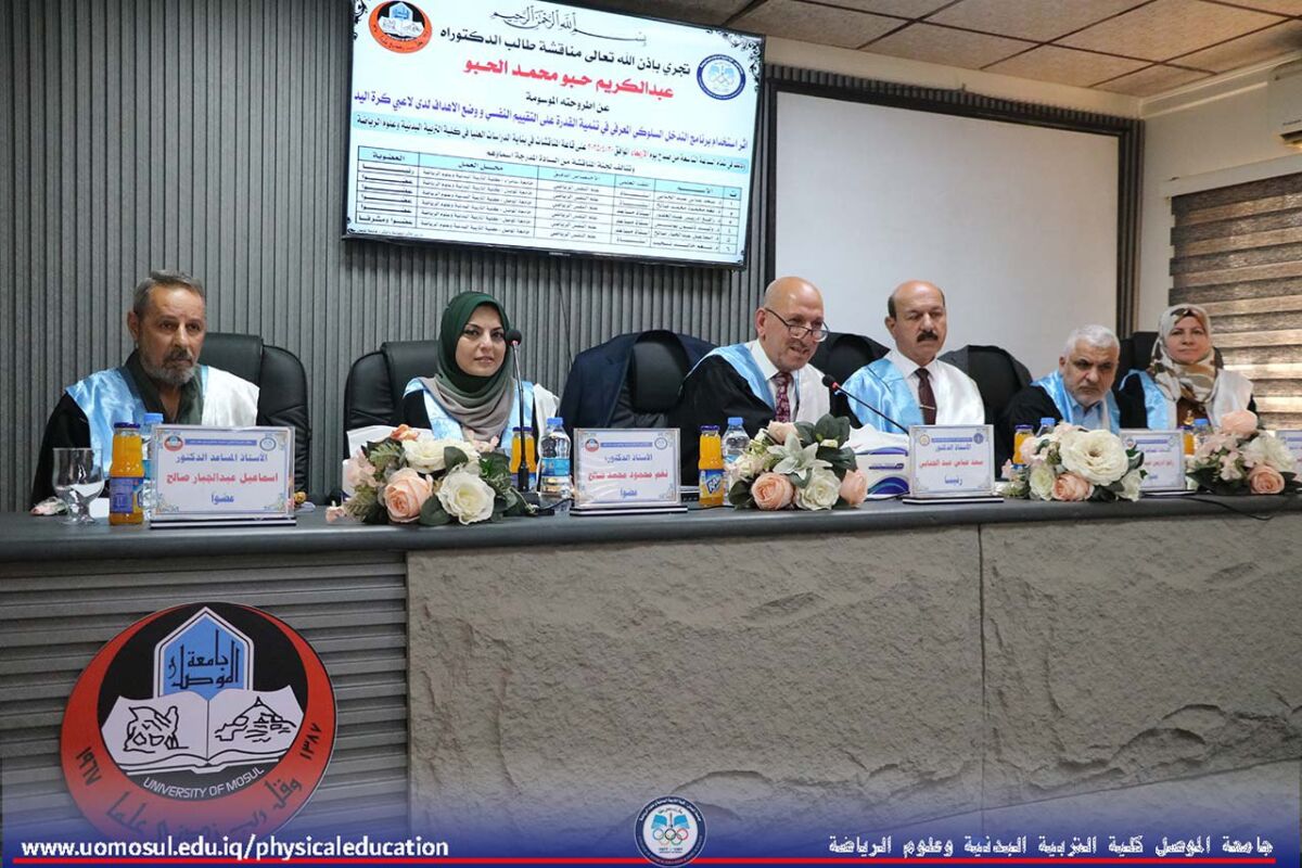 The College of Physical Education and Sports Sciences at the University of Mosul discussed a doctoral thesis on Wednesday, April 23, 2025, entitled "Determining the Impact Size and Level of a Number of Biomechanical Variables [Read More]